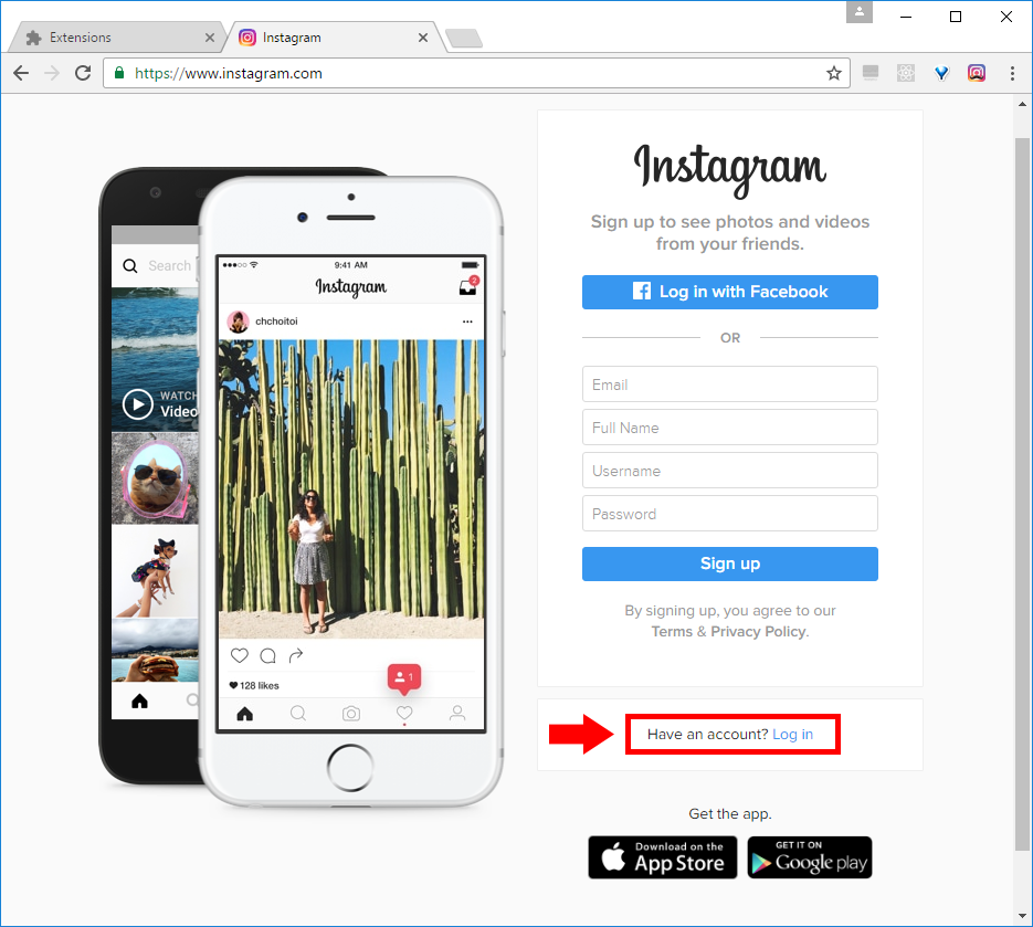 برای استفاده از افزونه اینستاچی ابتدا باید با مرورگر گوگل کروم وارد سایت اینستاگرام شوید.