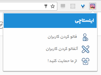 منوی افزونه تنها زمانی قابل دسترسی می باشد که آیکون آن فعال باشد در غیر اینصورت منوی پیش فرض گوگل کروم نمایش داده خواهد شد.