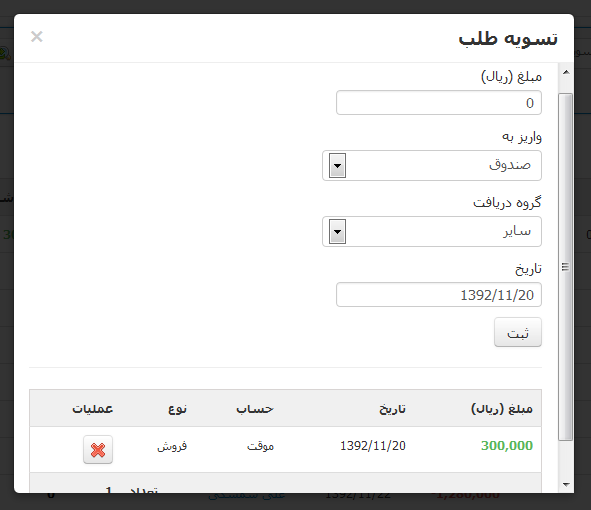 در صورت تسویه شدن بدهی و طلب می توانید در نرم افزار برای بدهی و طلب مورد نظر ، پرداخت تسویه ثبت کنید یا بدهی و طلب را به حالت تسویه شده در آورید.