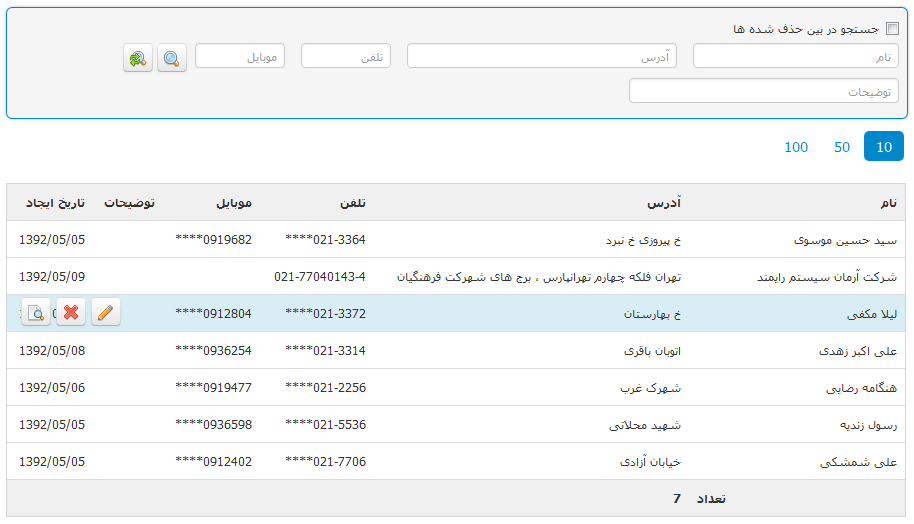 بر اساس اطلاعات مختلف شخص در میان اشخاص به جستجو بپردازید ، نتیجه جستجو را بر اساس آیتم های مختلف مرتب کنید و در صفحه های 10 تایی ، 50 تایی و 100 تایی آنها را مشاهده کنید.